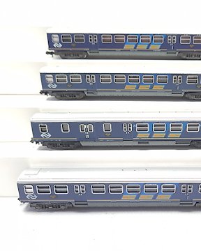 Minitrix N - 13120/13121 - 模型火車 (4) - 4辆Plan E车厢带有‘Nutricia Chocomel’广告条 - NS