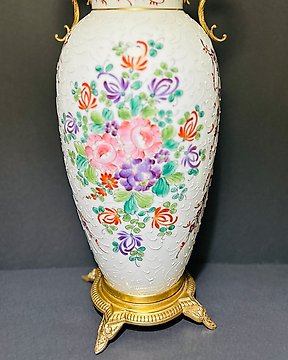 裝飾飾物 - Monumental French Ormolu-Mounted Floor Vase (51 cm) - Rococo Style - Chine de Commande famille rose - 法國 - 多彩凸起珐琅