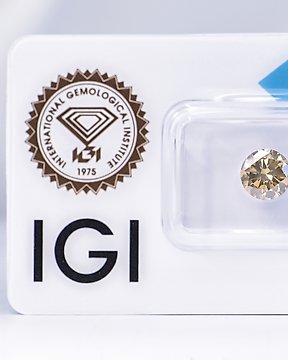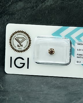 沒有保留價 - 1 pcs 鑽石 (天然彩色) - 0.51 ct - 圓形 - Fancy intense 淡黃色 褐色 - SI2 - 國際寶石學院(International Gemological Institute (IGI))