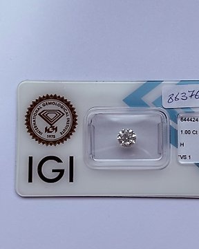 免運費1 pcs 鑽石 (天然) - 1.00 ct - 圓形 - H(次於白色的有色鑽石) - VS1 - 國際寶石學院(International Gemological Institute (IGI))