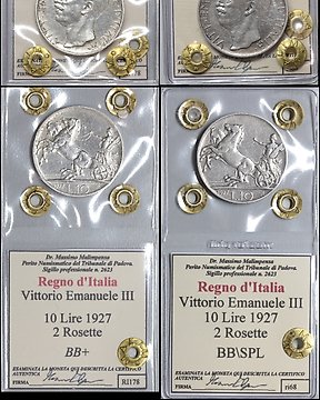 義大利王國 Vittorio Emanuele III. Lotto di 2 Monete - 10 Lire "Biga" 1927 (沒有保留價)