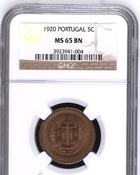 葡萄牙. Republic. 5 Centavos 1920 NGC 65 BN