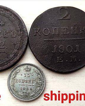 俄國. Lot of 3 coins, incl. silver; 2, 5, 15 Kopecks 1801/1908 (沒有保留價)