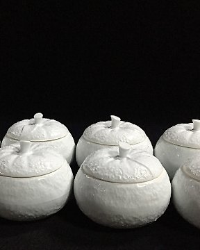 Japanese - 雕像, Set of 8 / Signed / Japanese Vintage Unique Kobachi Bowl / Lidded Orange design - 7 cm - 瓷器