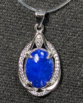 青金石 - 925银吊坠,配天然青金石,品质高达2.92克拉,坯面抛光。 - 墜飾