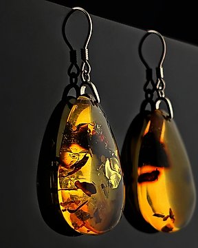 优雅的波罗的海琥珀吊坠耳环——干邑色光泽,含有有机化石包裹物 - 琥珀 (沒有保留價)
