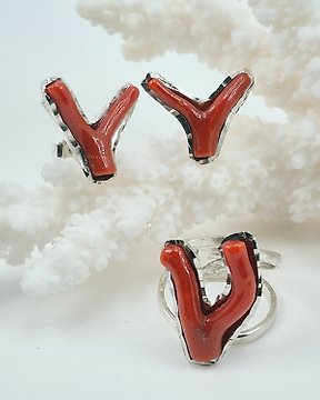 紅珊瑚 - 銀 - 兩件珠寶套裝 - CORALLO MEDITERRANEO