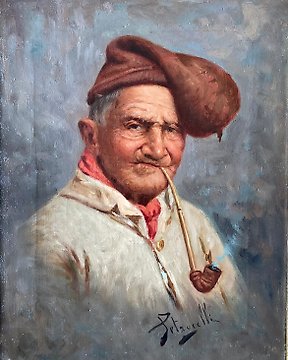 Achille Petrocelli (1861-1929) - Neapolitan Farmer Smoking a Pipe