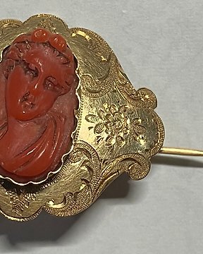 胸針 - 14 克拉 黃金 紅珊瑚 - 紅珊瑚