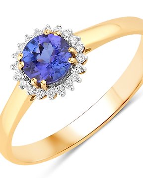 戒指 - 14 克拉 黃金 - 1.10ct. tw. 坦桑石 - 鉆石
