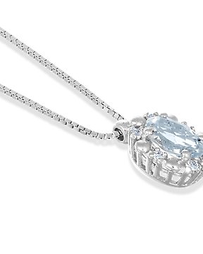 吊墜頸鏈 - 18 克拉 白金 海藍寶石 - 鉆石