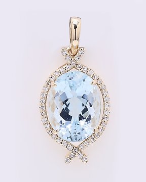 墜飾 - 14 克拉 黃金 - 0.59ct. tw. 海藍寶石 - 鉆石