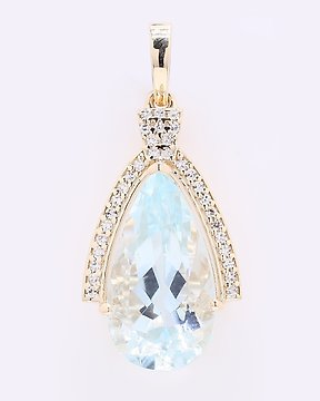 墜飾 - 14 克拉 黃金 - 2.30ct. tw. 海藍寶石 - 鉆石