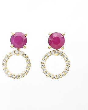 耳環 - 14 克拉 黃金 - 1.86ct. tw. 紅寶石 - 鉆石
