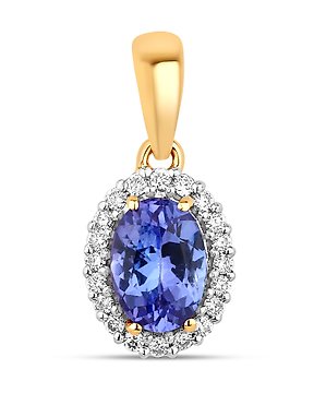 墜飾 - 14 克拉 黃金 - 0.82ct. tw. 坦桑石 - 鉆石