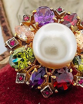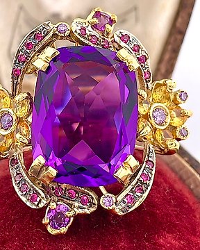 沒有保留價 - 戒指 - 9 節 黃金, 銀 石英 - 紅寶石