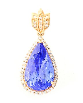 墜飾 - 14 克拉 黃金 - 0.56ct. tw. 坦桑石 - 鉆石