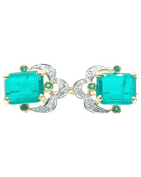 沒有保留價 - 耳環 - 9 節 黃金, 銀 祖母綠