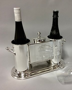 冷酒器 - 适用于两瓶的酒柜,中间带有放冰块的隔层。 - 鍍銀黃銅