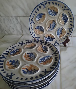 Faïencerie de Salins-les-Bains - 牡蠣盤具組 (6) - 陶器, 瑪瑙