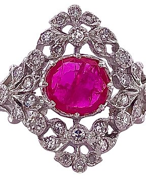 戒指 鉑金, 铂金艺术装饰风格戒指,镶嵌大型钻石和蓝宝石,约1940年 鉆石 (天然)