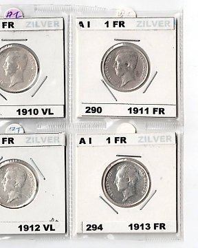 比利時. 阿爾貝一世. 1 Franc 1910/1914 morin 288/297 volledige reeks geen beschadiging in de rand (沒有保留價)現時出價€6