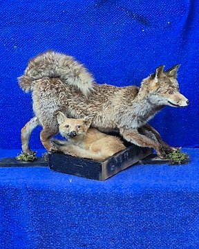 紅狐 標本牆壁支架 - Vulpes vulpes - Grande femelle adulte avec son renardeau - - 50 cm - 82 cm - 54 cm - 非《瀕臨絕種野生動植物國際貿易公約》物種