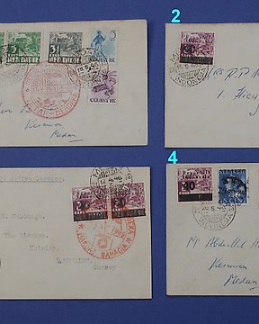 印度尼西亞 1946 - 四封印有印章的信件,关于日本占领印度尼西亚的信件,带有印刷和邮戳,包括Tetap Merdeka Sekali等。