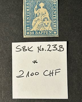 瑞士 1854/1855 - 瑞士 1856–1857 年 – Helvetia “Strubel” 版坐像 – 10 分仙德拉蓝色 – Berner Druck II – SBK - SBK No. 23B開拍價€1