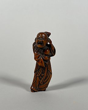 Signed Japan Wooden Noh Mask of KOKUSHIKIJO- 能面 黑式尉 (black Okina) with mask bag - 雕刻 木 - 日本 (沒有保留價)現時出價€1