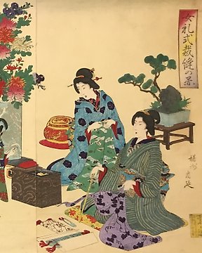 女礼式略図 婚礼 A Young Bride Series; Ladies' Etiquette Pictures - 1887 (Meiji 27) - Toyohara Chikanobu 豊原周延 (1838–1912) - 日本 - 明治時期(1868-1912) (沒有保留價)開拍價€1