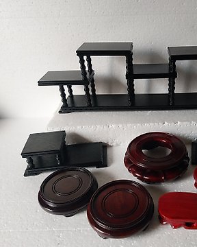 站架 - 木, 8个多样的展示、小桌子、杯垫 - 中國 (沒有保留價)