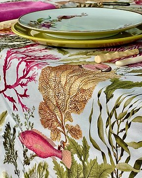 Tovaglia ricamata a mano in misto lino 12 posti ricamo nodo d'amore tablecloth handmade - 桌布 - 270 cm - 175 cm開拍價€1