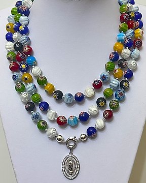 Crisral Murano(12毫米)配有“圣母玛利亚”图案。高品质AAA。神圣的圣洁纯净。 - 吊墜頸鏈 - 带扣,925纯银