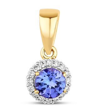 墜飾 - 14 克拉 黃金 - 0.56ct. tw. 坦桑石 - 鉆石
