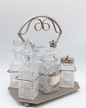 Binder T. Wilhelm argentiere Tedesco famoso - Binder T.Wilhelm - 調味瓶套裝 (3) - 古董银制调味套装,配有水晶瓶 - .800 銀 - 带有水晶瓶開拍價€1