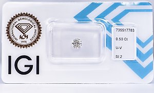 1 pcs 鑽石 (天然) - 1.00 ct - 圓形 - J(極微黃、從正面看是亮白色) - SI2 - 國際寶石學院(International Gemological Institute (IGI))開拍價€1