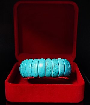 美丽的蓝色绿松石霍瓦石手链,礼品盒装,免运费 - 手鈪